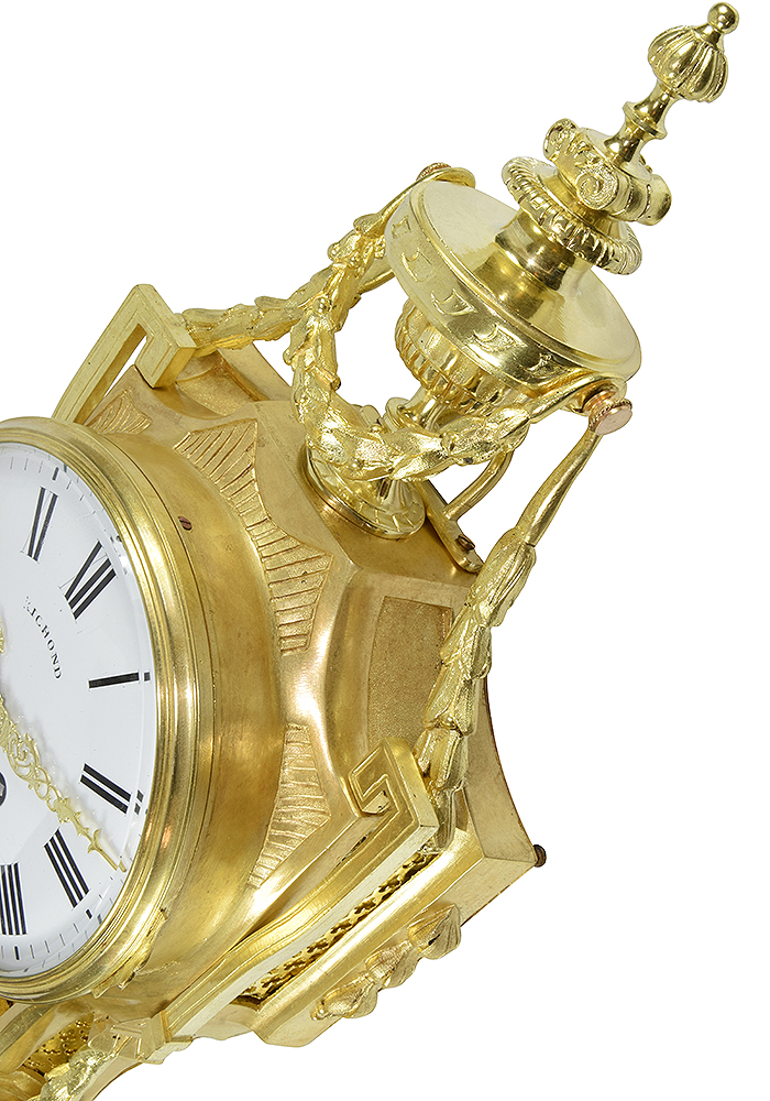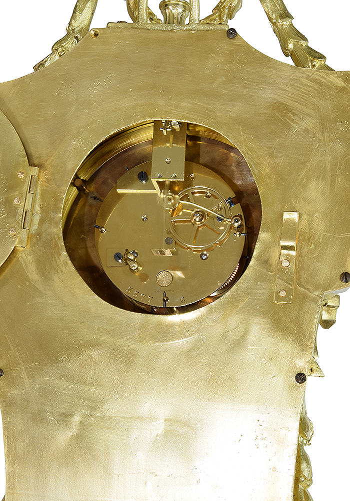 Le mouvement d’une pendule subit une révision complète par un démontage intégral, un nettoyage puis un polissage de chaque pièce. La durée de cette opération influence la brillance. Nous aimons obtenir un éclat brillant qui s’accorde avec la dorure de l’objet.