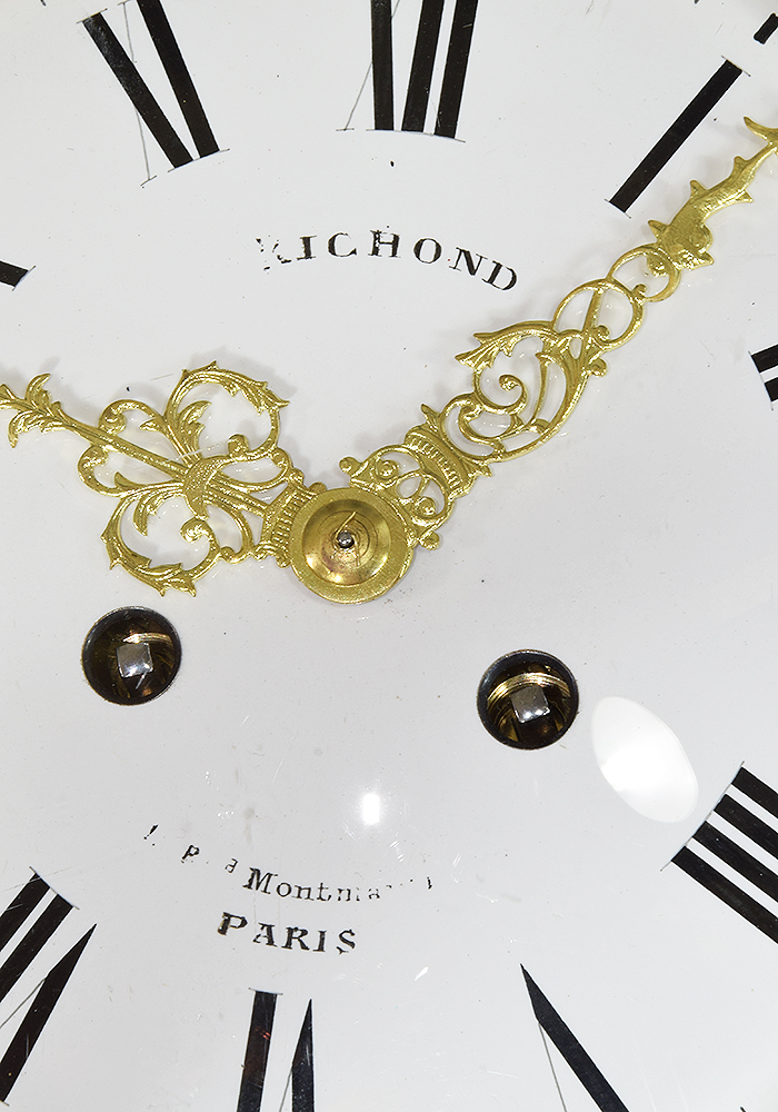 Mouvement d’origine sans modification, sonnerie des heures et demi-heure sur cloche ancienne.