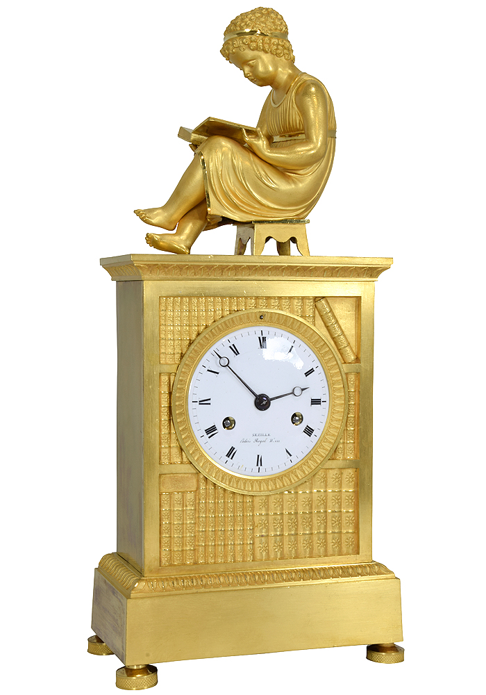Pendule bibliothèque « enfant à la lecture » Empire
