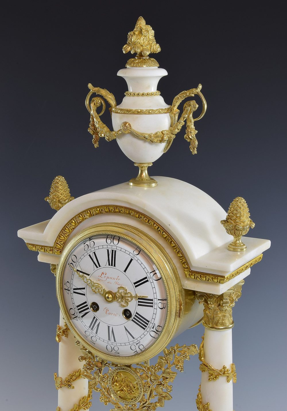 Große, sehr dekorative Portikusuhr, seltenes Modell, sehr schöne Herstellung. Auf dem Zifferblatt signiert „Lepaute horologist du Roy Paris“, eine angesehene Uhrmacherfamilie, die im Tardy, dem Wörterbuch der französischen Uhrmacher, erwähnt wird.