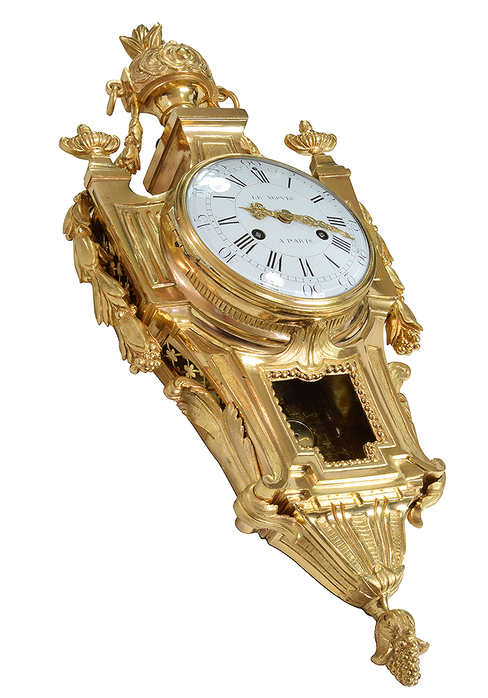 We do not use the term “Restoration”, which implies a significant transformation or major repair that modifies an object’s authenticity or original appearance. Each object is completely dismantled, then thoroughly cleaned part by part; our cleaning technique restores shine without adversely affecting the gold. We then put the clock back together, returning all the various parts to their origin location, as well as all the nuts and screws. Subsequently, the item is inspected to ensure it is perfectly even, symmetrical, and smooth, etc.