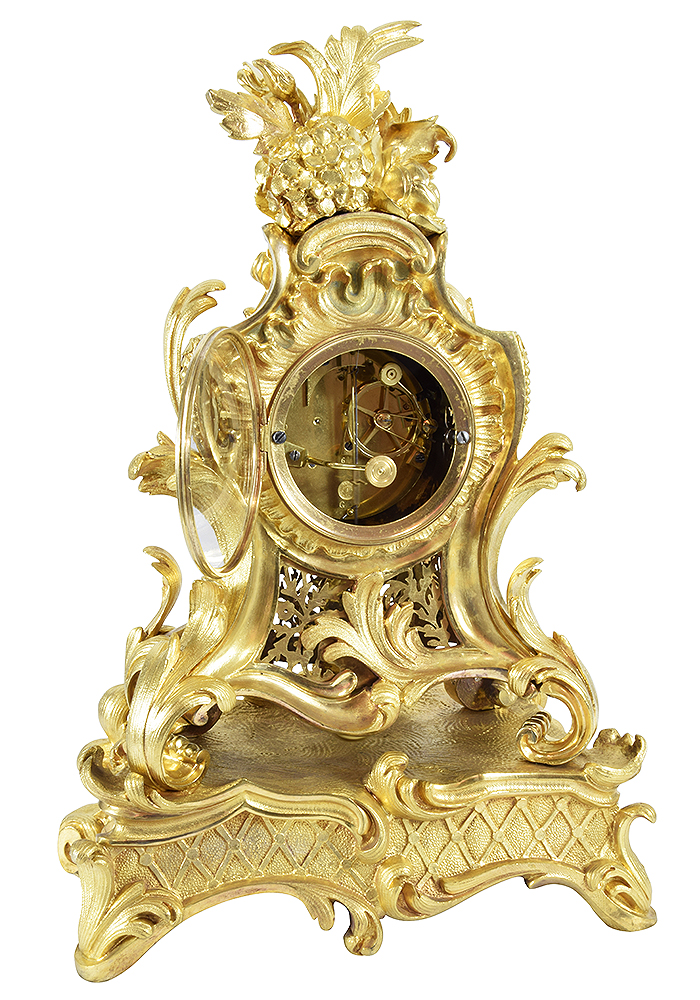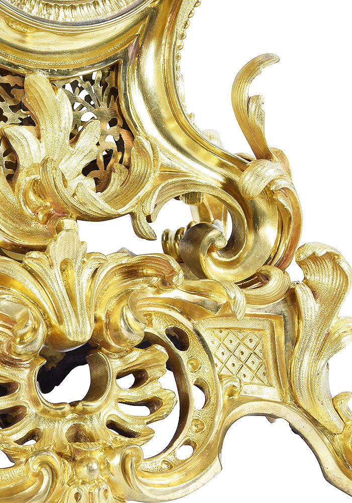 We do not use the term “Restoration”, which implies a significant transformation or major repair that modifies an object’s authenticity or original appearance. Each object is completely dismantled, then thoroughly cleaned part by part; our cleaning technique restores shine without adversely affecting the gold. We then put the clock back together, returning all the various parts to their origin location, as well as all the nuts and screws. Subsequently, the item is inspected to ensure it is perfectly even, symmetrical, and smooth, etc.