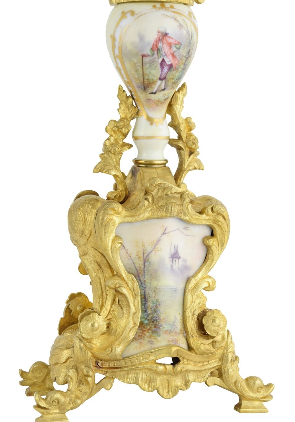 Clock and Candlestick gilt bronze and porcelain