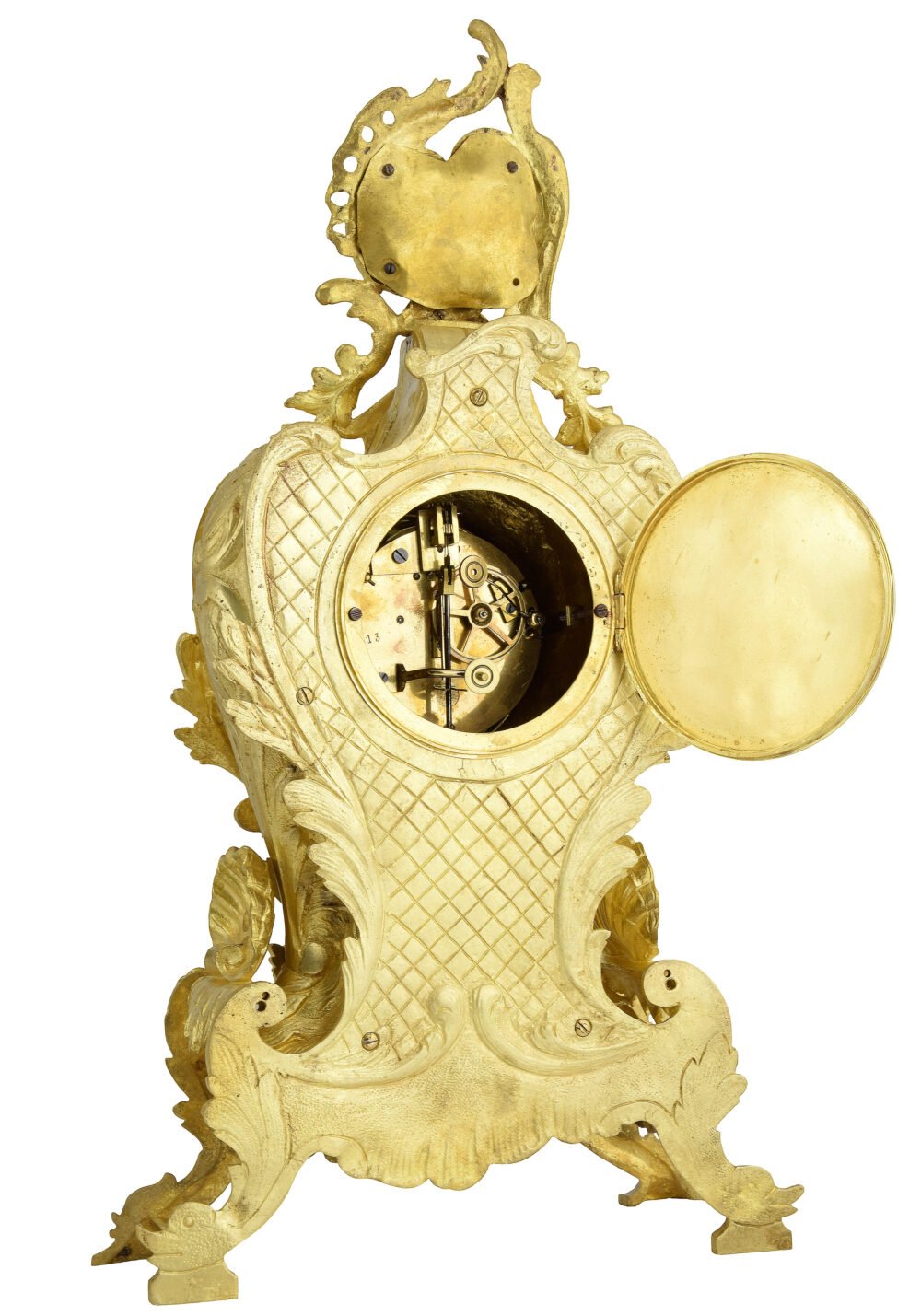We do not use the term “Restoration”, which implies a significant transformation or major repair that modifies an object’s authenticity or original appearance. Each object is completely dismantled, then thoroughly cleaned part by part; our cleaning technique restores shine without adversely affecting the gold. We then put the clock back together, returning all the various parts to their origin location, as well as all the nuts and screws. Subsequently, the item is inspected to ensure it is perfectly even, symmetrical, and smooth, etc.