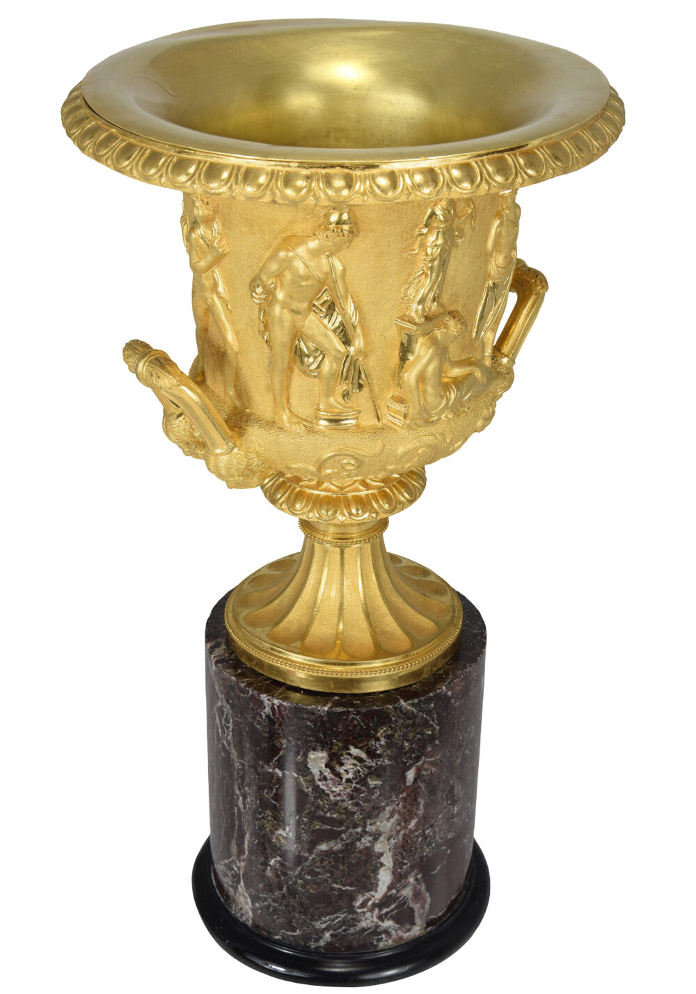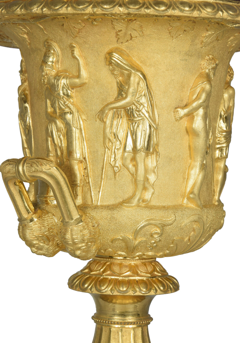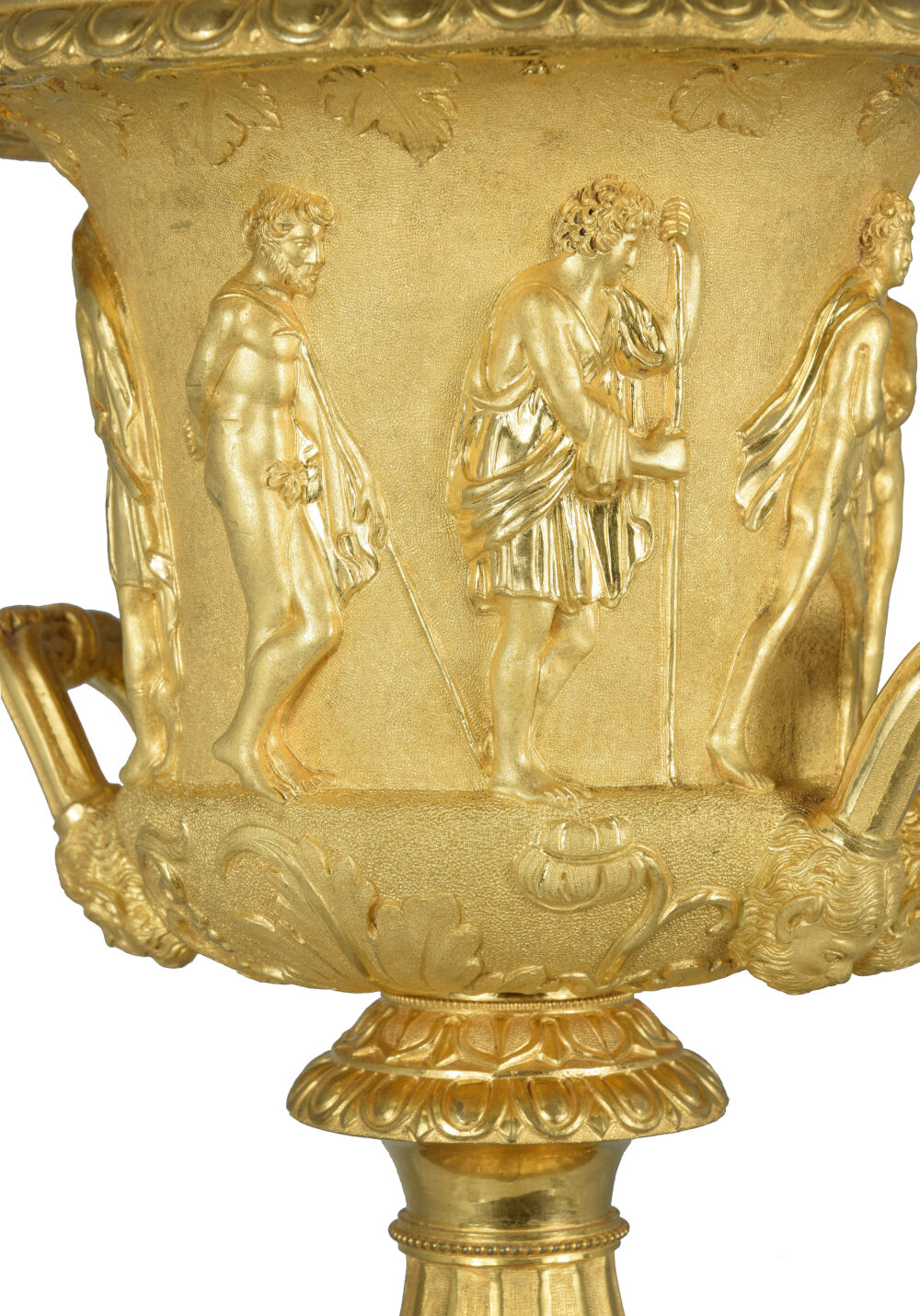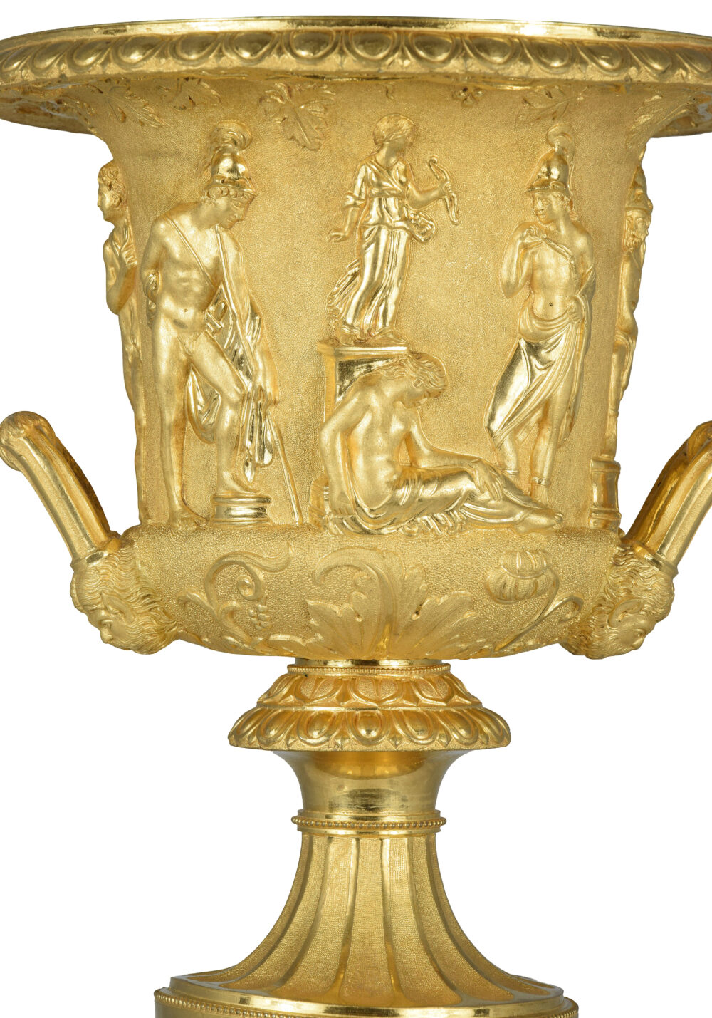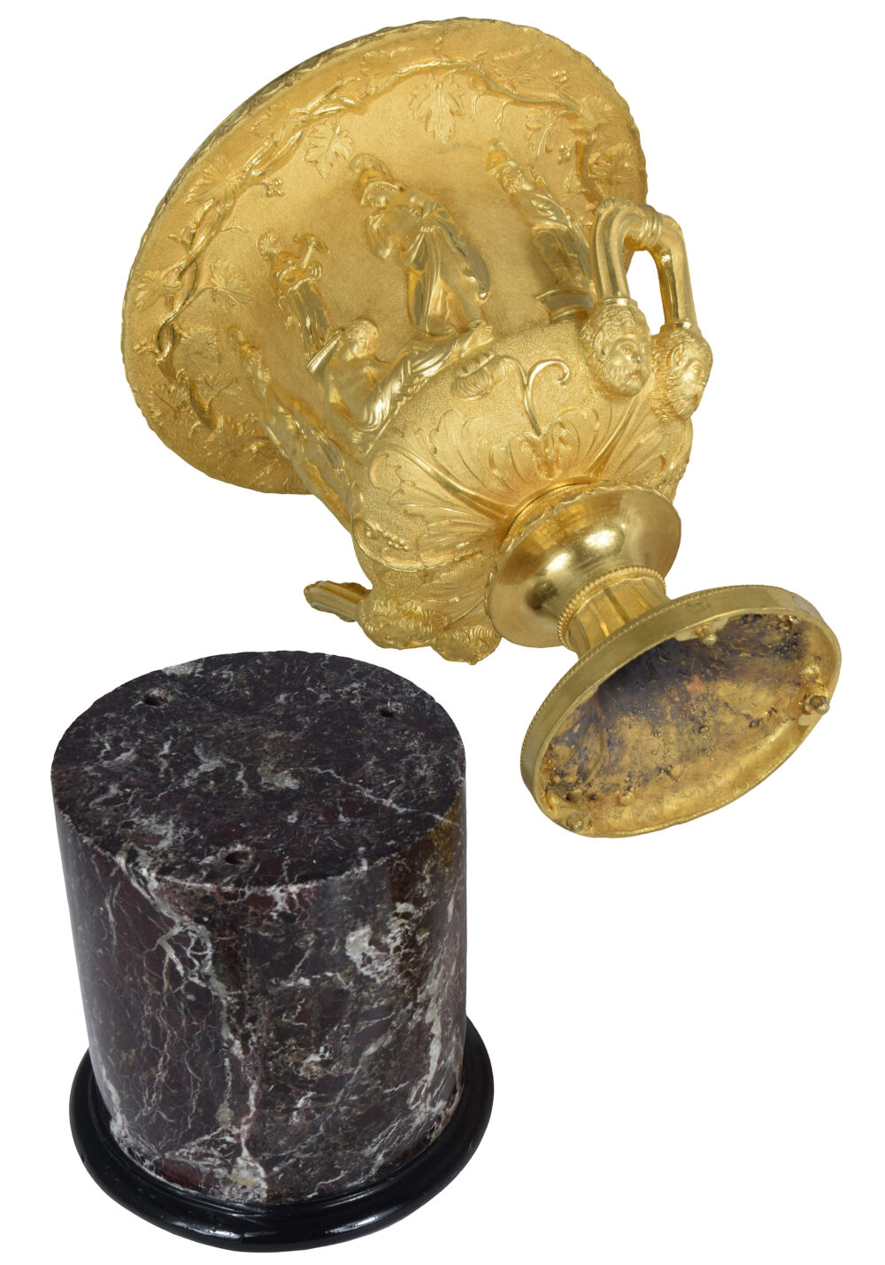 Extremely rare and in exceptionally well-preserved condition, this Empire-era vase, dating from around 1810, is made of mercury-gilt bronze.