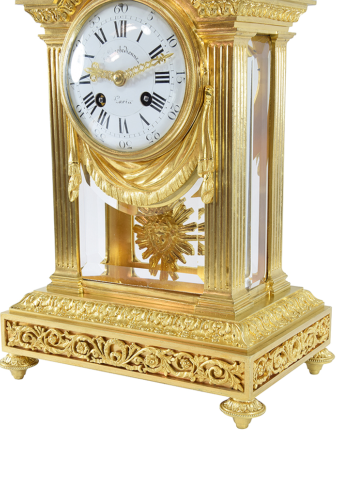 Pendule cage vitrée en bronze doré « Barbedinne à Paris »