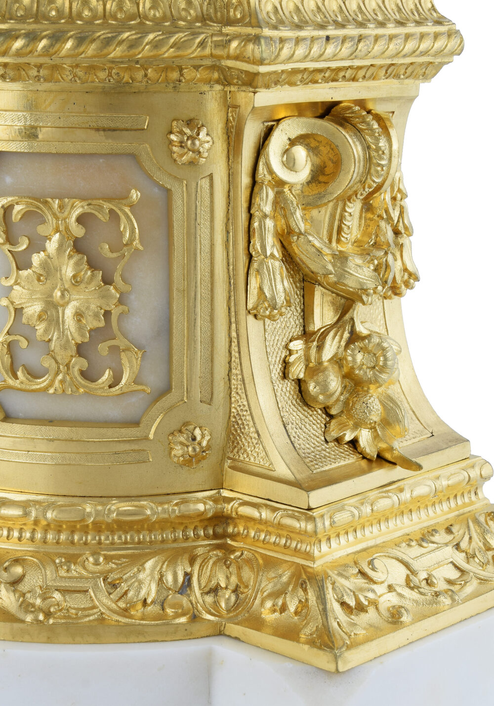 We do not use the term “Restoration”, which implies a significant transformation or major repair that modifies an object’s authenticity or original appearance. Each object is completely dismantled, then thoroughly cleaned part by part; our cleaning technique restores shine without adversely affecting the gold. We then put the clock back together, returning all the various parts to their origin location, as well as all the nuts and screws. Subsequently, the item is inspected to ensure it is perfectly even, symmetrical, and smooth, etc.