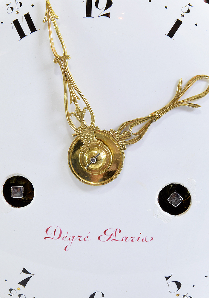 The clock’s movement undergoes a complete overhaul; it is totally dismantled, cleaned and each individual part is polished. The duration of this procedure affects the shine: we prefer to obtain a brilliant shine, in keeping with the gilding of the object. To increase the strength and quality of the gears, we apply a very important procedure, known as bouchonnage, to correct for wear accumulated over years of operation, consisting in the placing cork of stoppers in any pivot holes that have become deformed by wear. After the clock has been completely reassembled, it is tested over a long period of time to ensure that the movement, as well as the hour and half-hour strikes, are operating correctly.