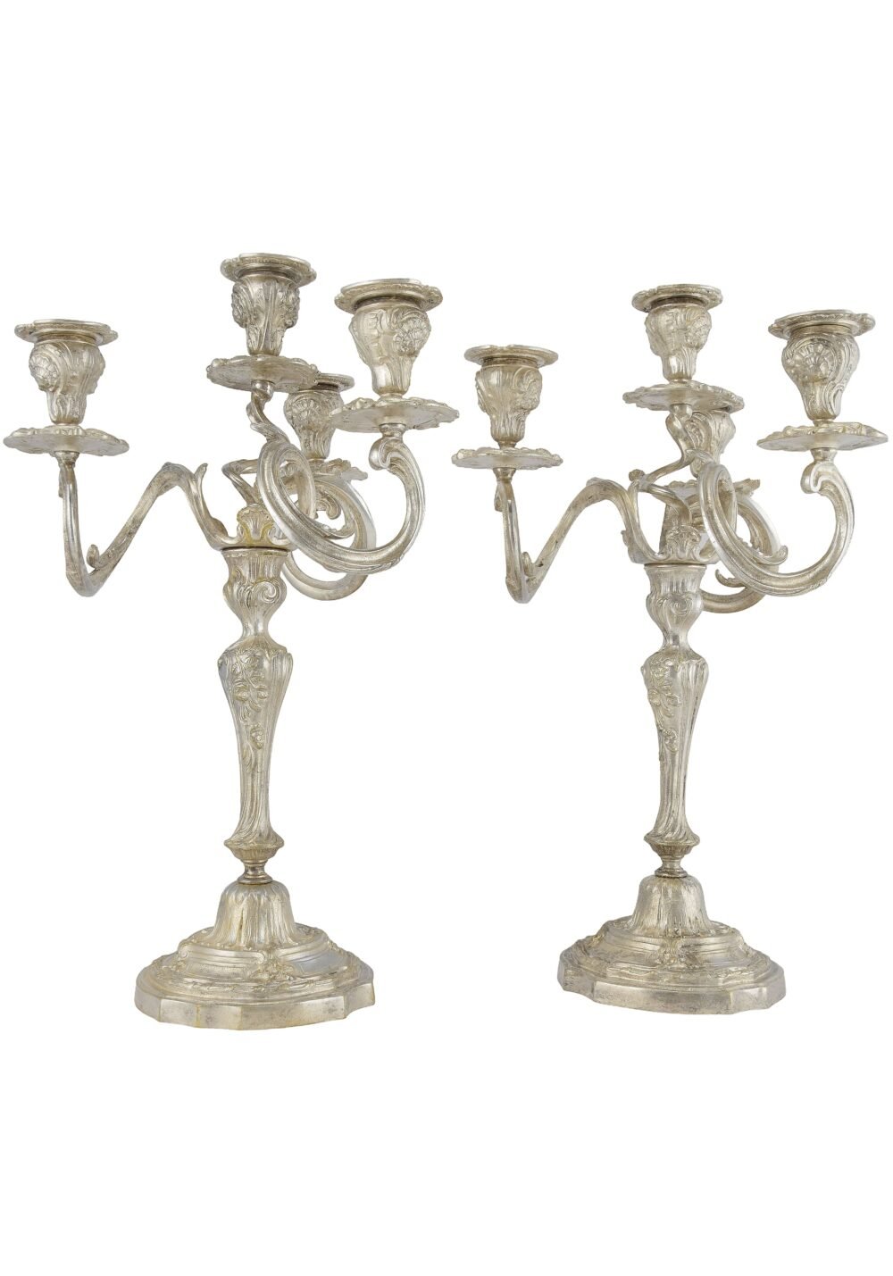 Paire de chandeliers bronze argenté style Louis XV