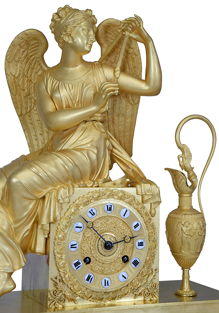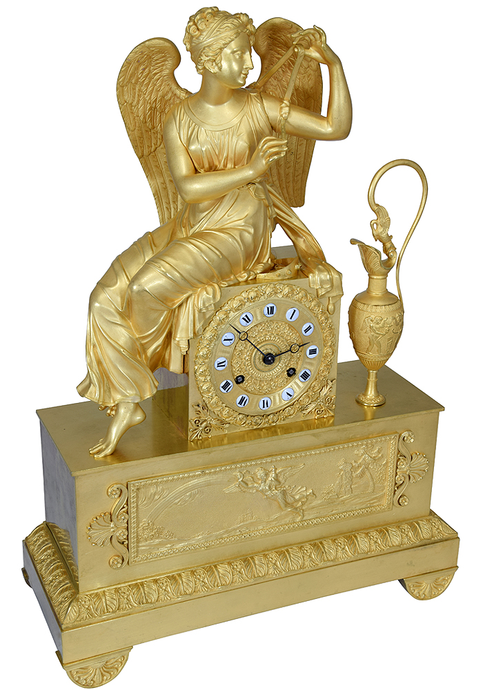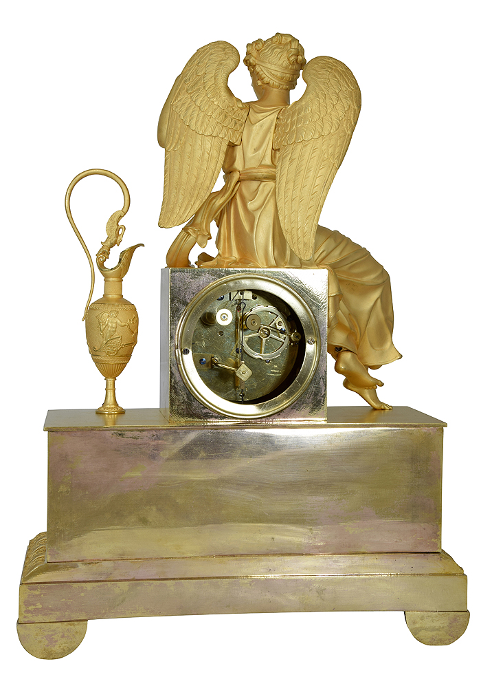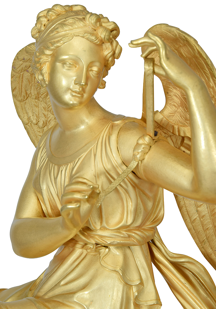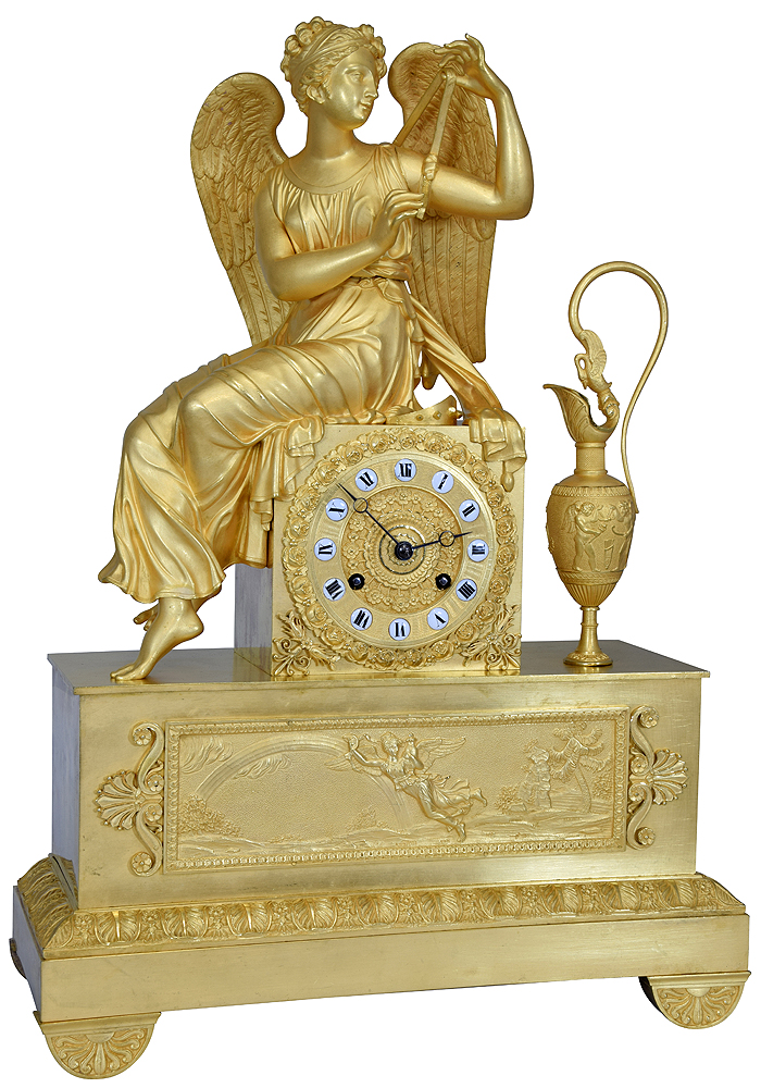 Pendule « Iris s’attachant les ailes » bronze doré au mercure