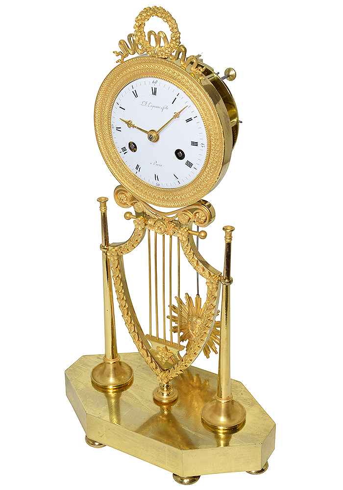 Pendule Lyre d’époque Empire signé « Laguesse »