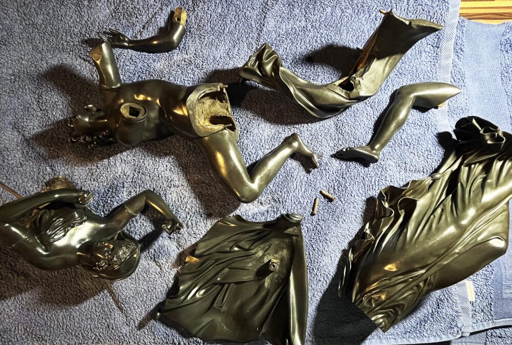 Par ses proportions particulièrement généreuses — 64 cm de hauteur, ce qui constitue un volume important pour une pendule de ce type — cette œuvre possède une présence sculpturale remarquable. Elle dépasse la simple fonction d’objet d’horlogerie pour devenir une véritable sculpture décorative, où la mythologie, l’architecture et l’art du bronze se rencontrent dans une composition harmonieuse, expressive et profondément romantique.