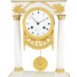 La mise en route et l’accès au mécanisme sont accessibles à l’arrière de la pendule depuis une grande porte composé d’une armature en laiton doré maintenant une vitre épaisse avec une finition biseautée.