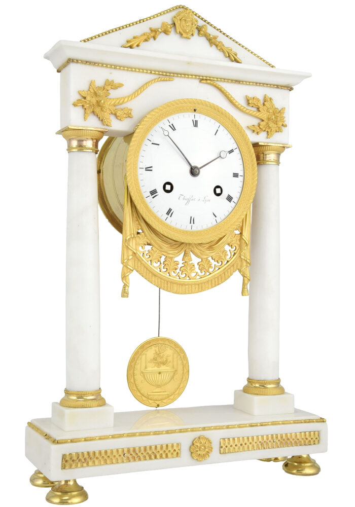 Le mouvement d’une pendule subit une révision complète par un démontage intégral, un nettoyage puis un polissage de chaque pièce. La durée de cette opération influence la brillance. Nous aimons obtenir un éclat brillant qui s’accorde avec la dorure de l’objet.
