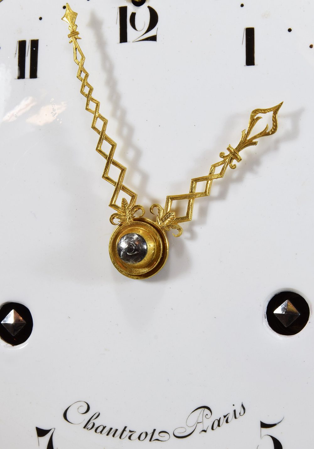 Mécanisme d’origine sans modification, suspension à fil de soie, sonnerie des heures et demi-heure sur cloche ancienne.