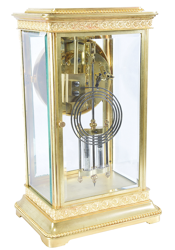 Le mouvement d’une pendule subit une révision complète par un démontage intégral, un nettoyage puis un polissage de chaque pièce. La durée de cette opération influence la brillance. Nous aimons obtenir un éclat brillant qui s’accorde avec la dorure de l’objet.