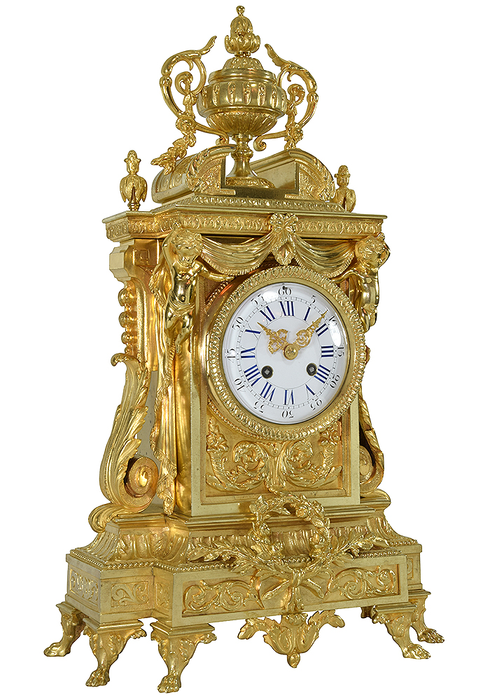 Le mouvement d’une pendule subit une révision complète par un démontage intégral, un nettoyage puis un polissage de chaque pièce. La durée de cette opération influence la brillance. Nous aimons obtenir un éclat brillant qui s’accorde avec la dorure de l’objet.