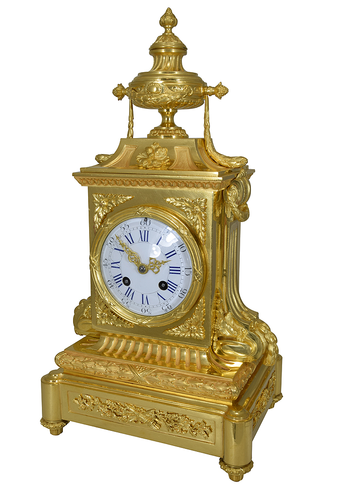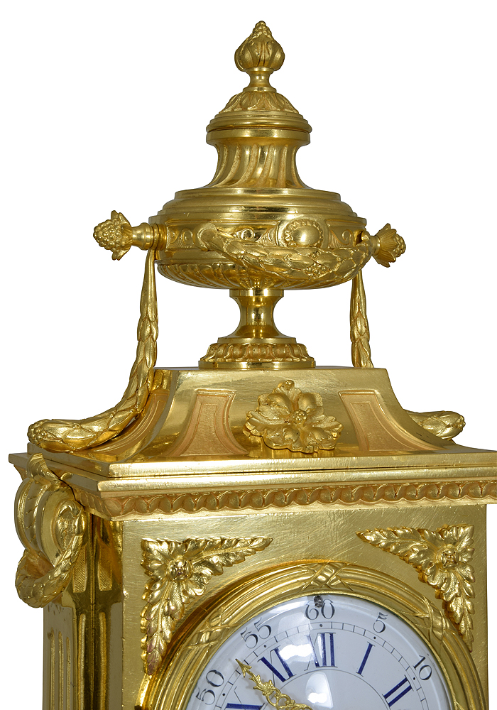 Le mouvement d’une pendule subit une révision complète par un démontage intégral, un nettoyage puis un polissage de chaque pièce. La durée de cette opération influence la brillance. Nous aimons obtenir un éclat brillant qui s’accorde avec la dorure de l’objet.