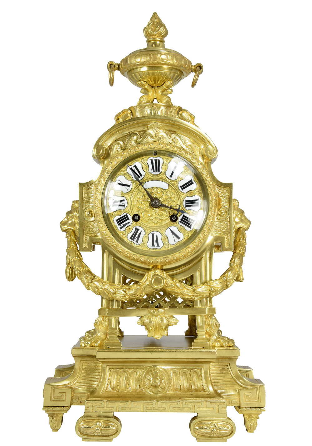 Le mouvement d’une pendule subit une révision complète par un démontage intégral, un nettoyage puis un polissage de chaque pièce. La durée de cette opération influence la brillance. Nous aimons obtenir un éclat brillant qui s’accorde avec la dorure de l’objet.
