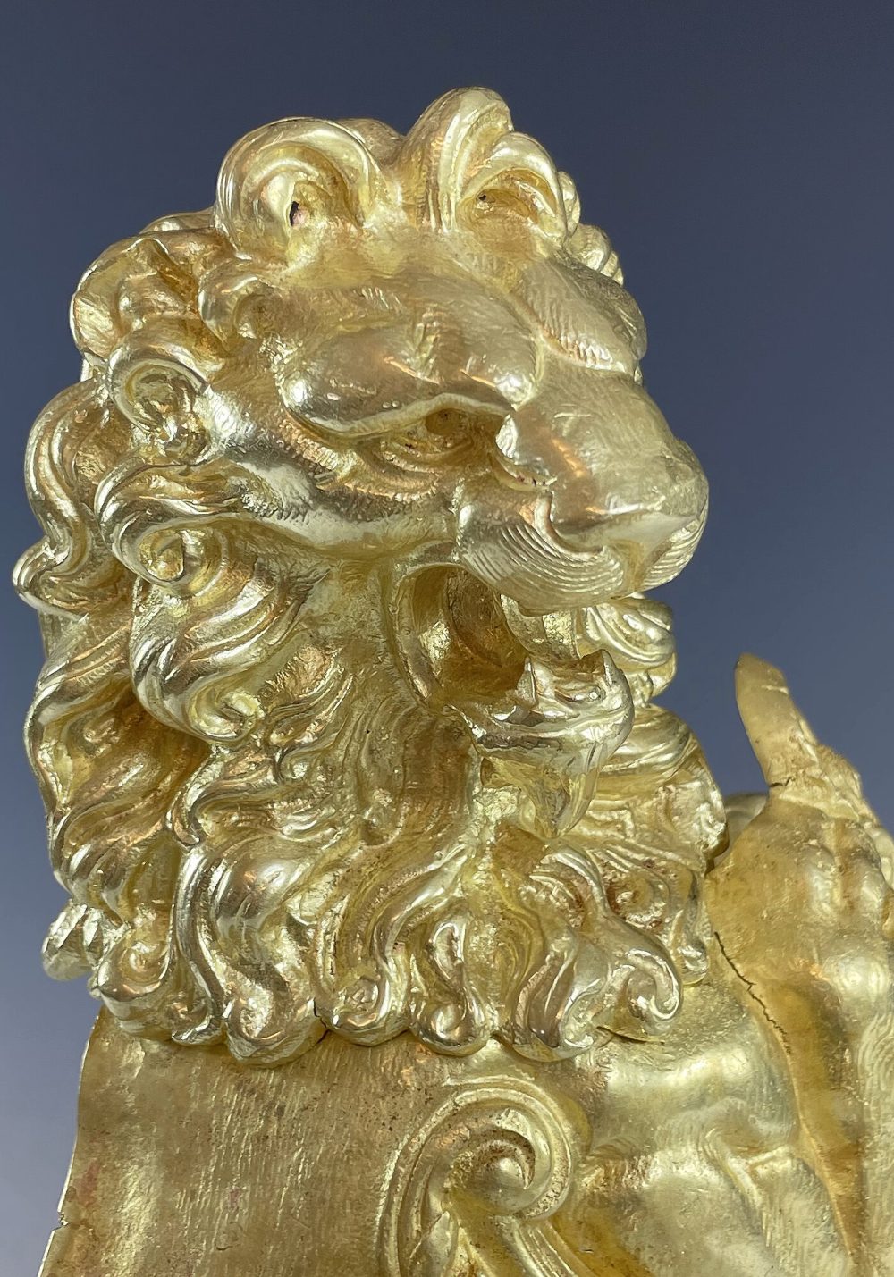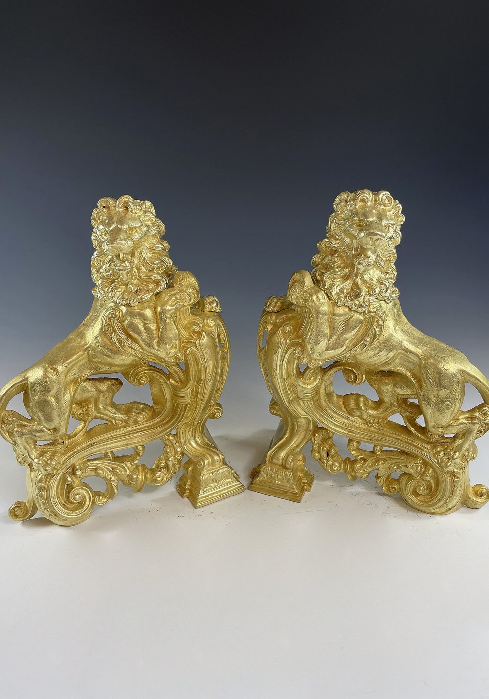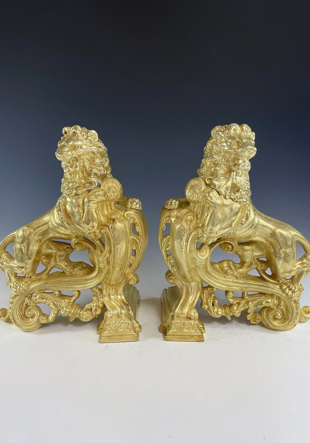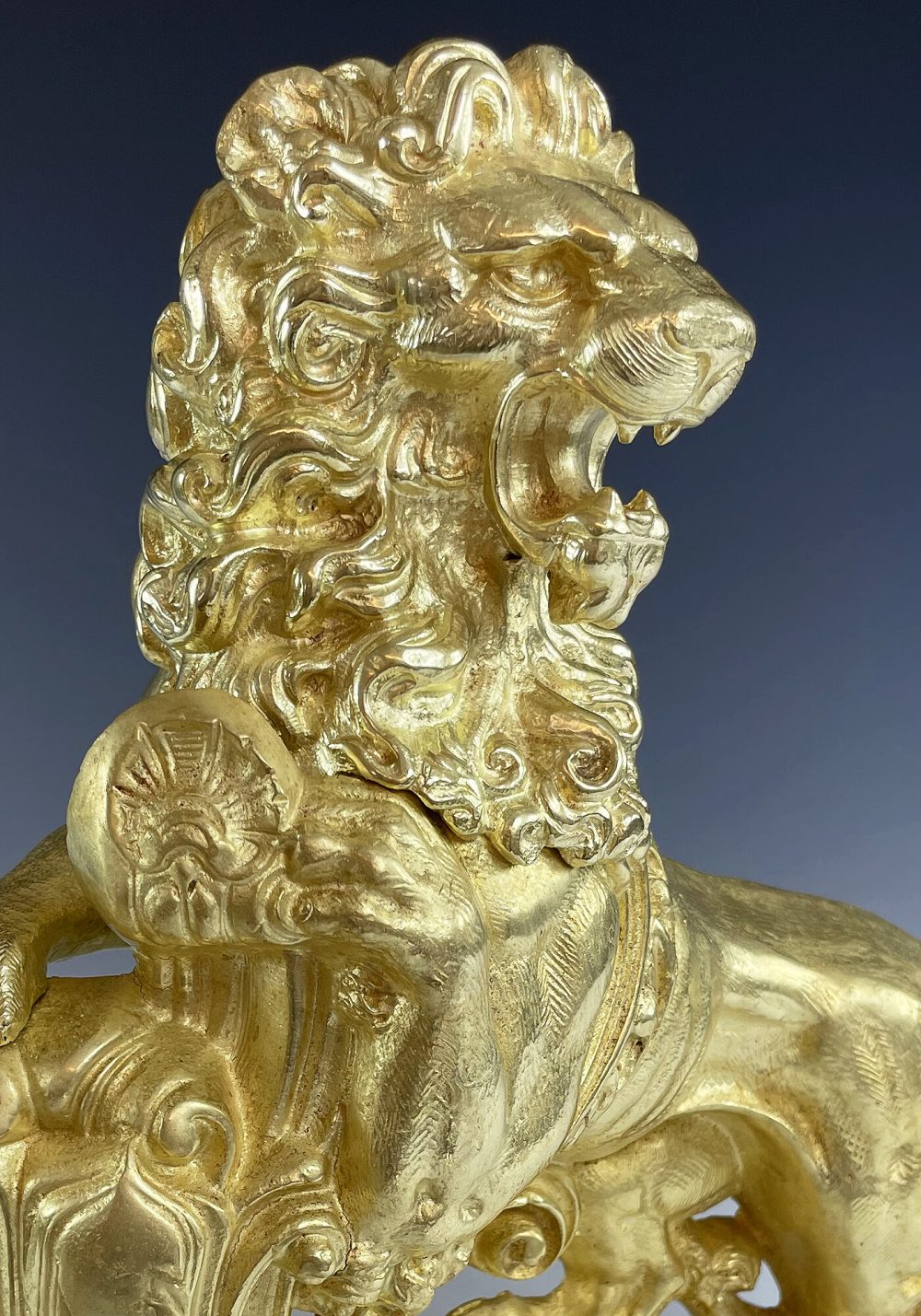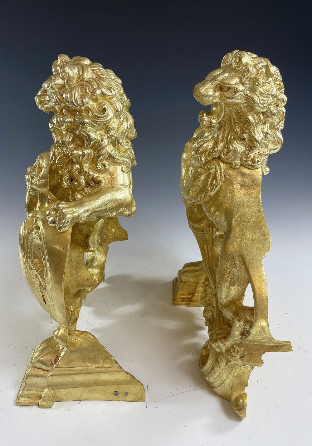 Très décorative paire de lions en bronze doré, très belle dorure. Finement exécuté avec beaucoup de relief. Époque Napoléon III.