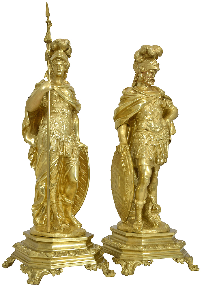 Paire de sculptures guerrières Athéna et Mars signé « Moreau »